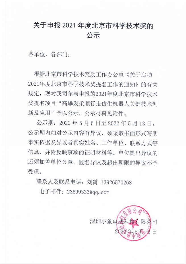 關于申報2021年度北京市科學技術獎的公示