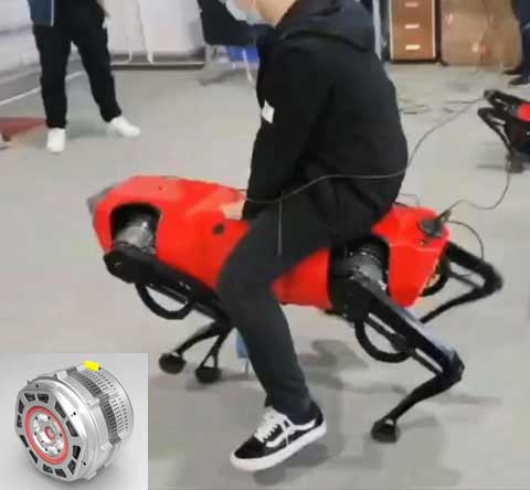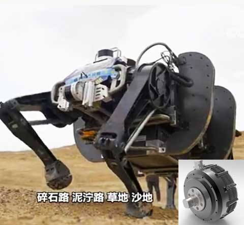 全電驅動12自由度大型仿生機器人關節(jié)電機,單電機功率6kW,峰值輸出扭矩1300Nm,輸出轉速120rpm,單電機重量10kg.