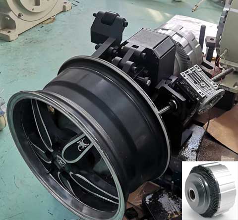 與清華電機系、中國一汽新概念汽車研究院合作開發(fā)的輪邊電機系統(tǒng),功率25kW,峰值輸出扭矩600Nm,輸出轉速1200rpm,電機重量13kg。