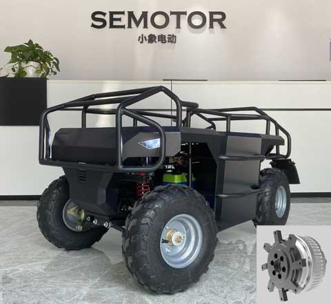 4輪驅動,單輪功率3kw,峰值輸出扭矩210Nm,最高轉速400rpm,總重量8kg.